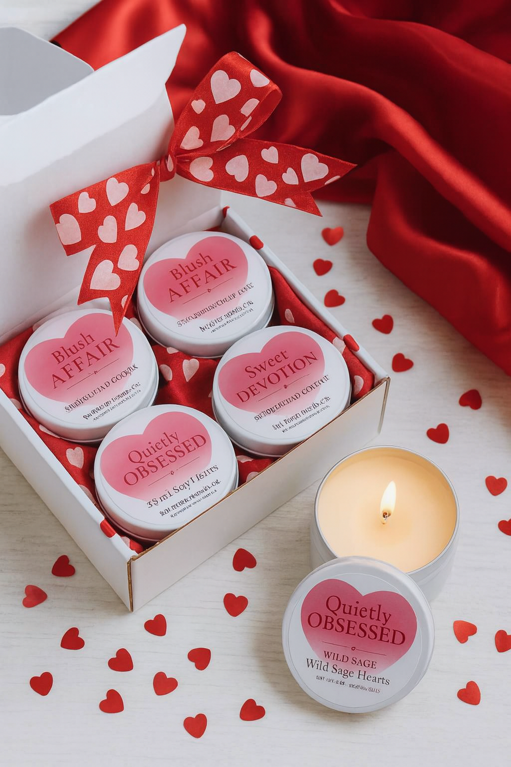 All four come in a white box with heart tissue paper and red heart ribbon wrapped to gift or enjoy.