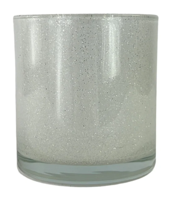 12 oz double wicked, straight white glitter jar for the holidays. it is so pretty NOT FLASHY.